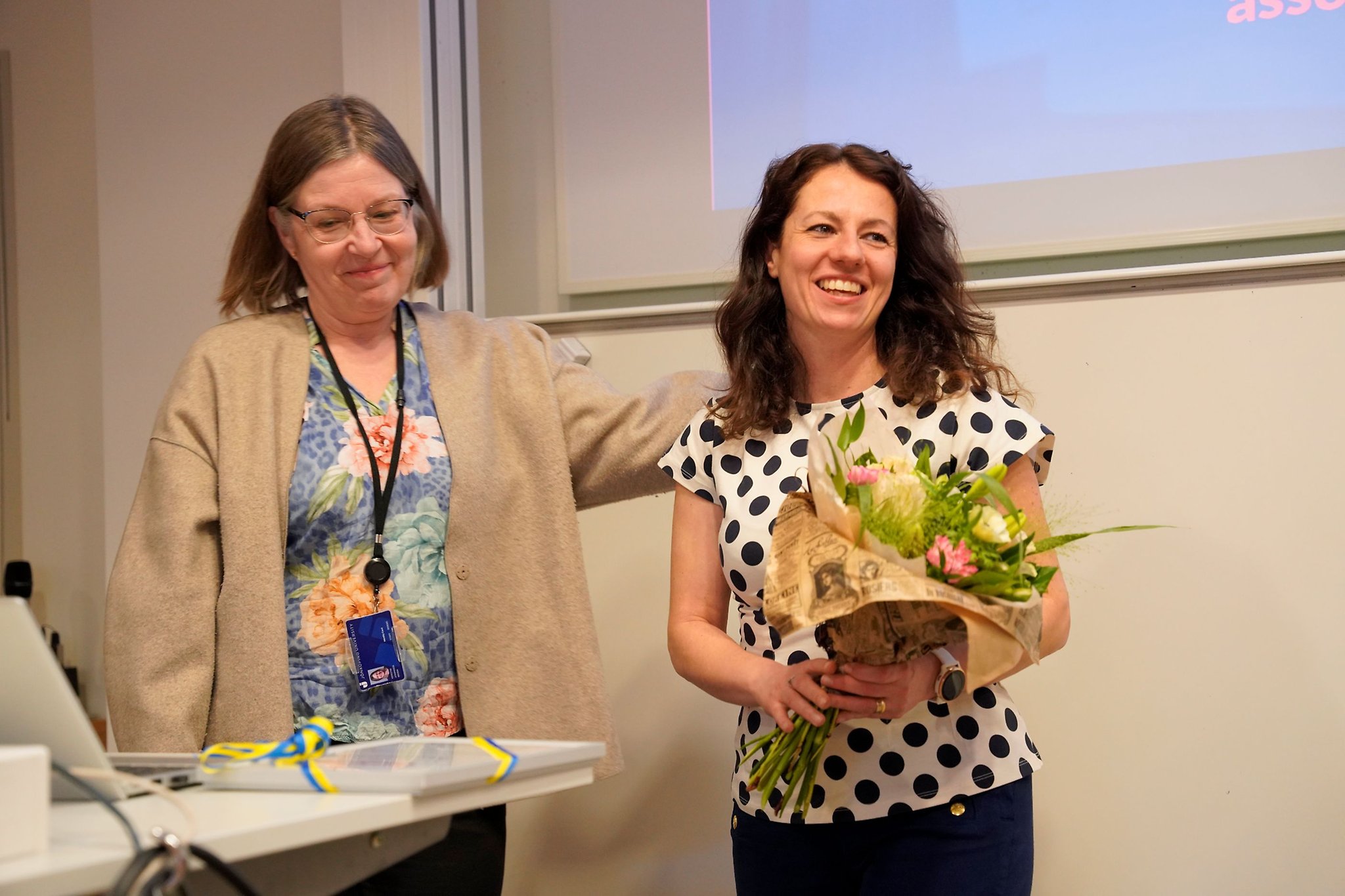 Paraskeva Wlazlak receives a diploma from Annika Moscati, Associate Professor at JTH, certifying that she has passed her trial lecture.