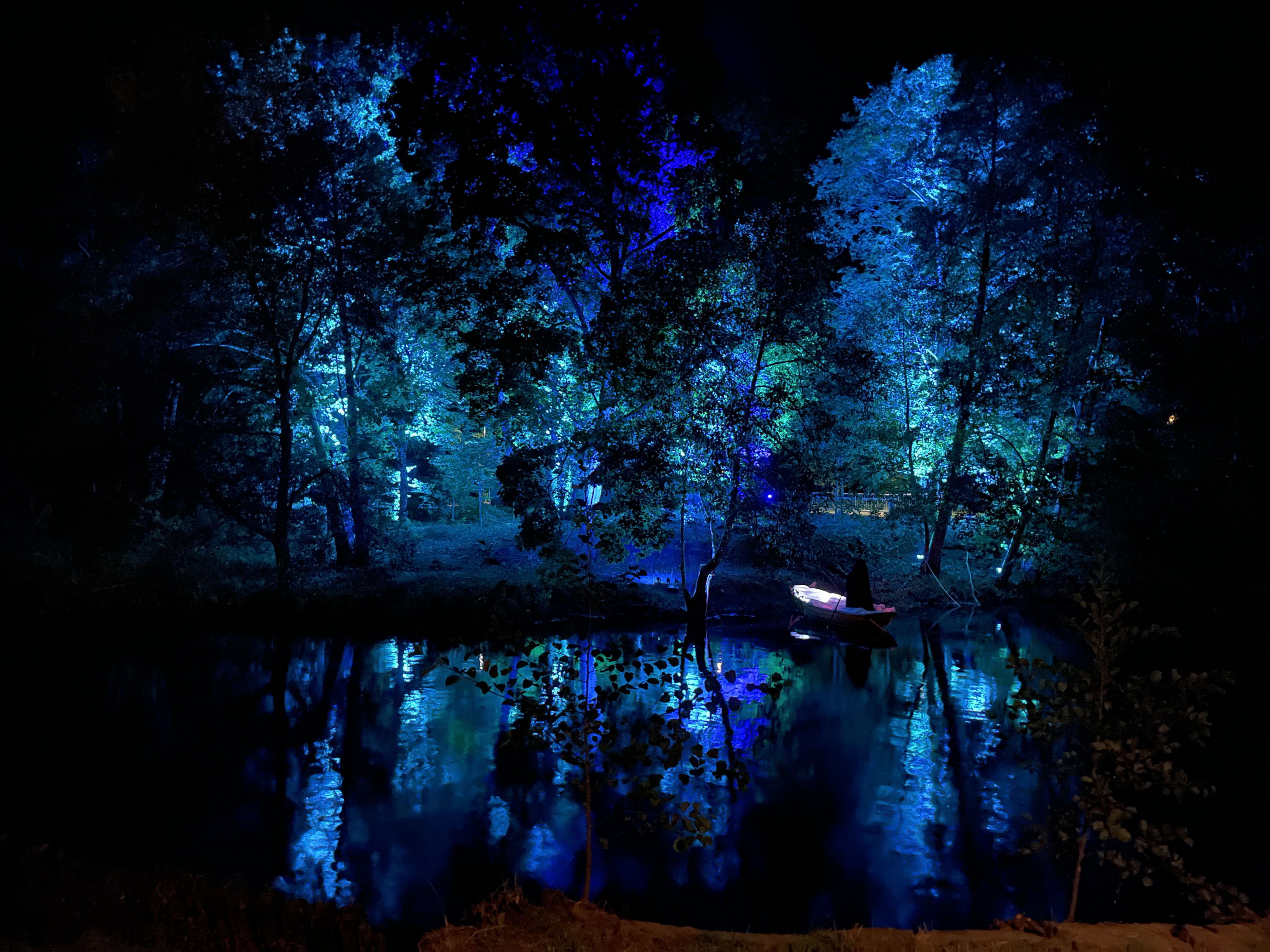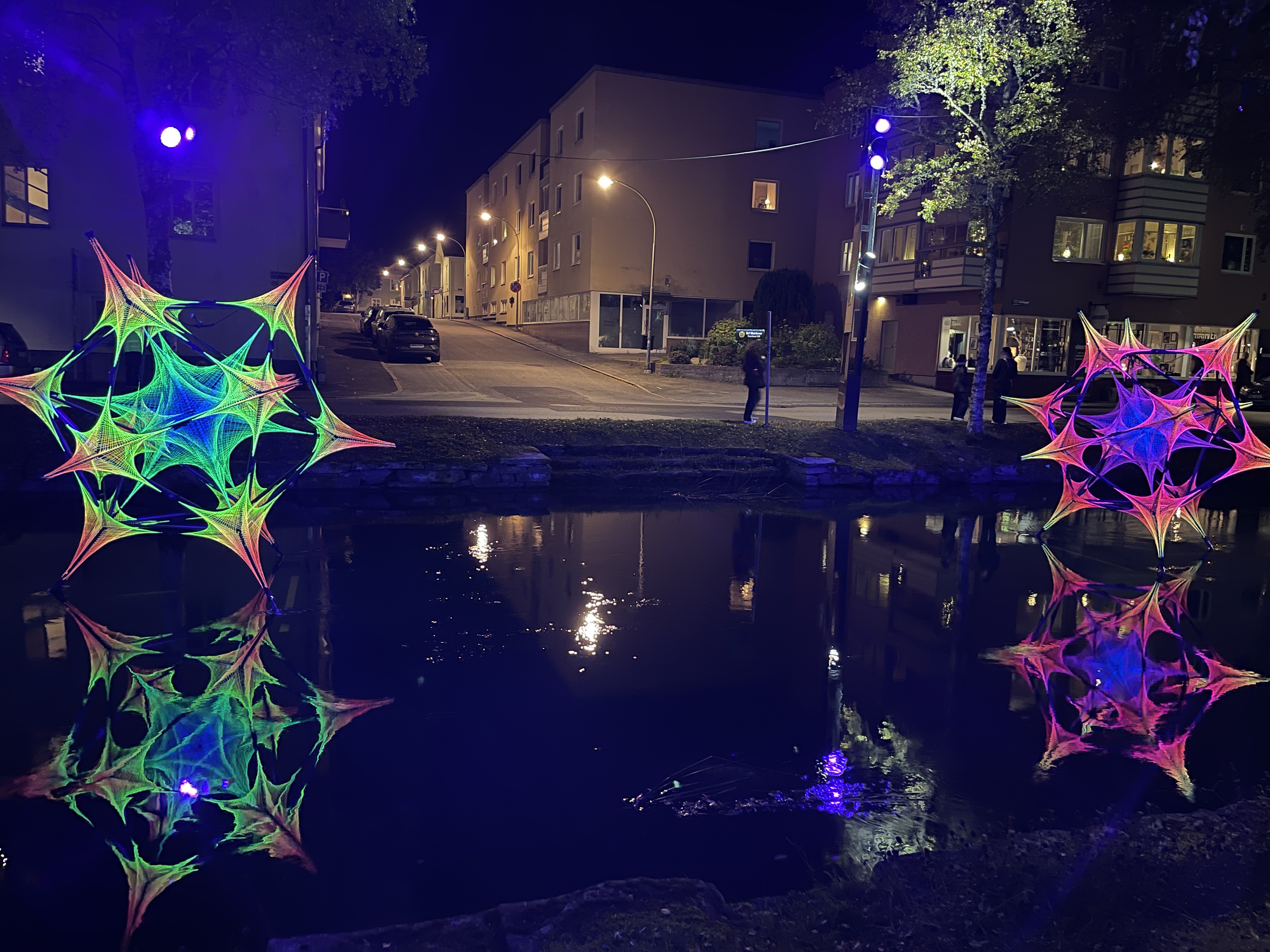 Flera ljusinstallationer från studenter på Ljusdesign och belysningsteknik på JTH finns med på den internationella ljusfestivalen Lights in Alingsås, som pågår till den 3 november. Foto: Patrik Gunnar Helinen, https://slowart.se/