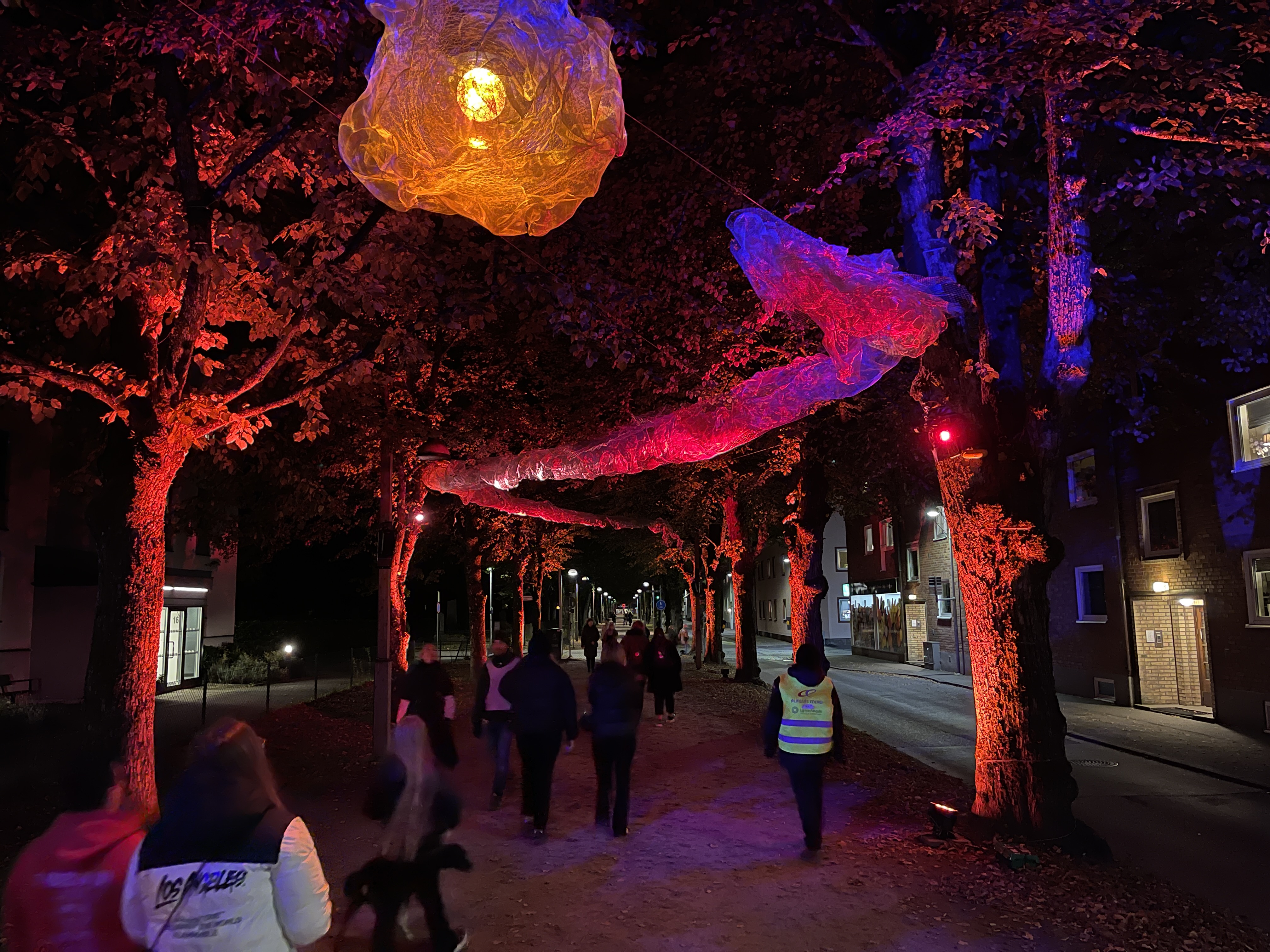 JTH-studenterna har lagt ned tio dagars arbete i Alingsås på att dra kilometervis med sladd och sätta upp tusentals lampor med mera. Lights in Alingsås har 25-årsjubileum i år och bjdö därför in ljusdesigners från 20 nationer. Ljuseventet pågår till och med den 3 november.