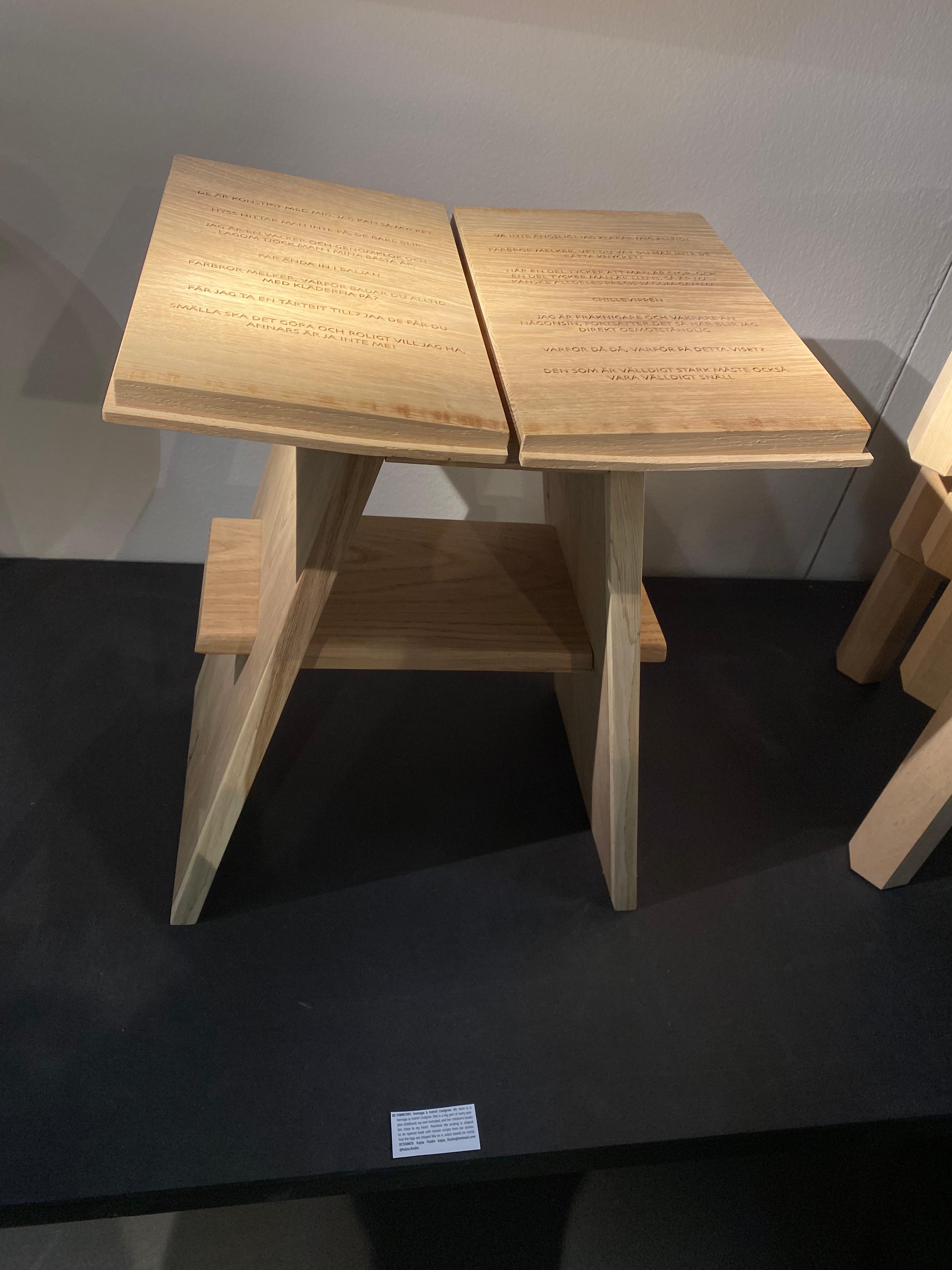 Some students from PUM and the master's programme in Industrial Design have also participated in a voluntary project called STOOLS pdf, 222.3 kB, opens in new window. which were also on display during the fair. In that project the students made stools inspired by Swedish celebrities such as Mia Skäringer, Tim “Avicii” Bergling and Astrid Lindgren, among others.