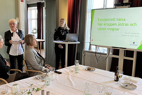 During the ceremony, former recipients presented their completed projects. Due to the pandemic, the 2020 project had to be implemented a year later, the project went to "Elderly in safety" and Madeleine Svärd together with the emergency services in Nässjö. Elderly people have been given study circles to discuss various themes around safety and the aim was to increase safety which in turn increases good health. 2021 scholarship winner was Ann-Britt Grändamark and co-applicant Sandra Rosell with the project "Existential health as the body ages and the soul matures". Participants have met in groups and individually to discuss existential issues with the aim of making them feel better, that the conversations will increase their vitality.