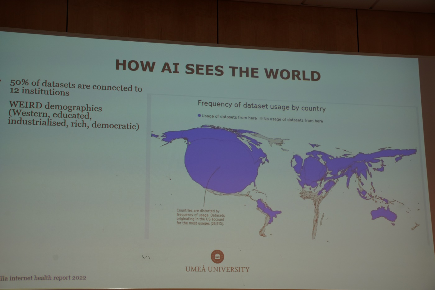 One of the other keynote speakers was Virginia Dignum, professor of Responsible Artificial Intelligence and director of the AI Policy Lab at Umeå University. She has an extensive track record and is a member of both the UN Advisory Body on AI, the Global Partnership on AI (GPAI), the UNESCO Expert Group for the Implementation of AI Recommendations and the OECD Expert Group on AI. She is also the founder of the Dutch AI alliance ALLAI and co-chair of WEF's Global Future Council on AI.