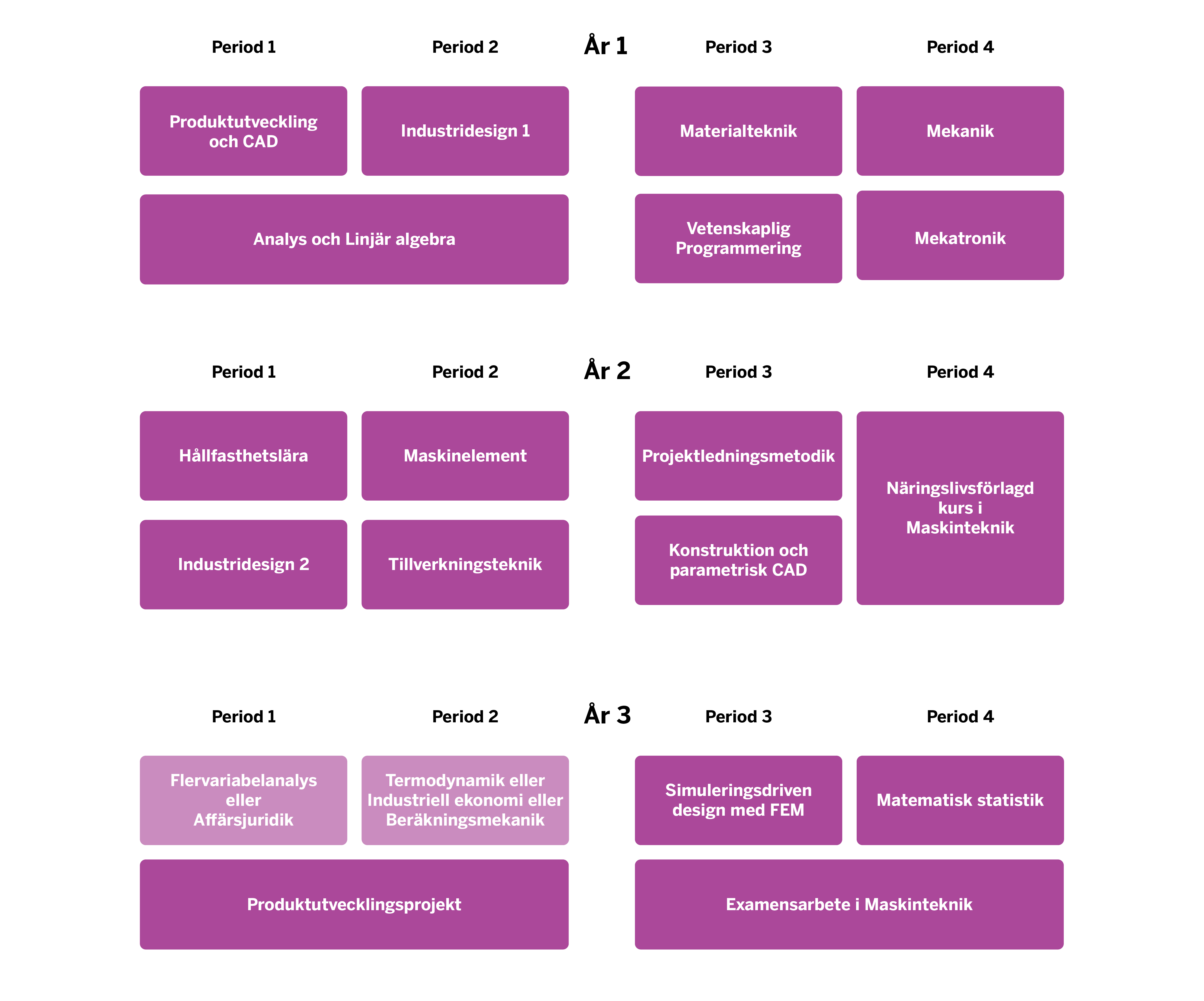 Under utbildningen studerar du 30 hp i matematik, vilket ger behörighet till samtliga masterprogram i Sverige. Efter genomfört masterprogram finns möjlighet till doktorandstudier, som kan leda till en karriär som forskare. Du kan också söka till masterprogram i produktutveckling, konstruktion, maskinteknik, industriell design eller liknande.