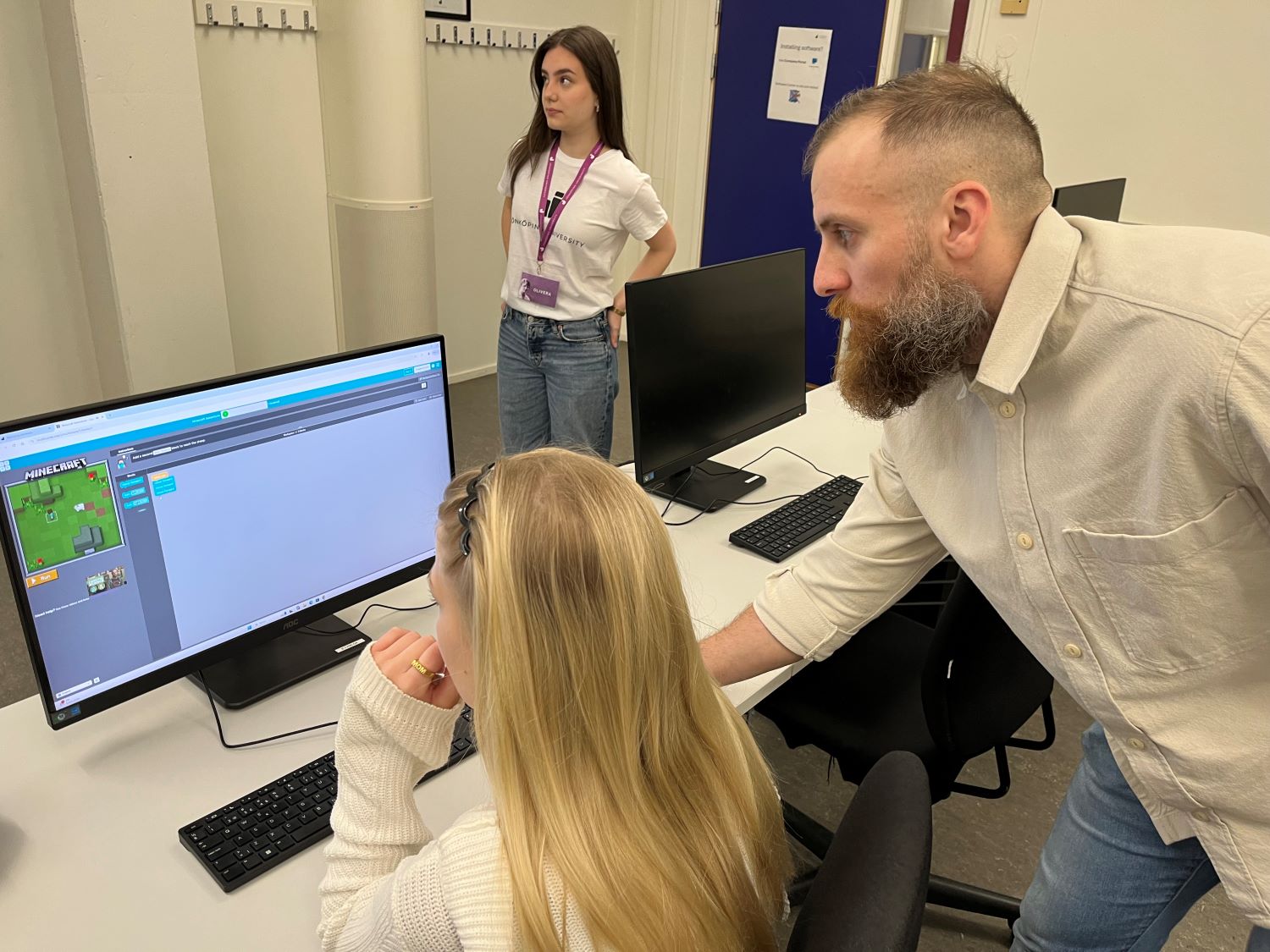 Jasmin Jakupovic, universitetsadjunkt i datateknik, ledde stationen där barnen skulle tänka logiskt och använda enkel kodning i en Minecraftvärld.