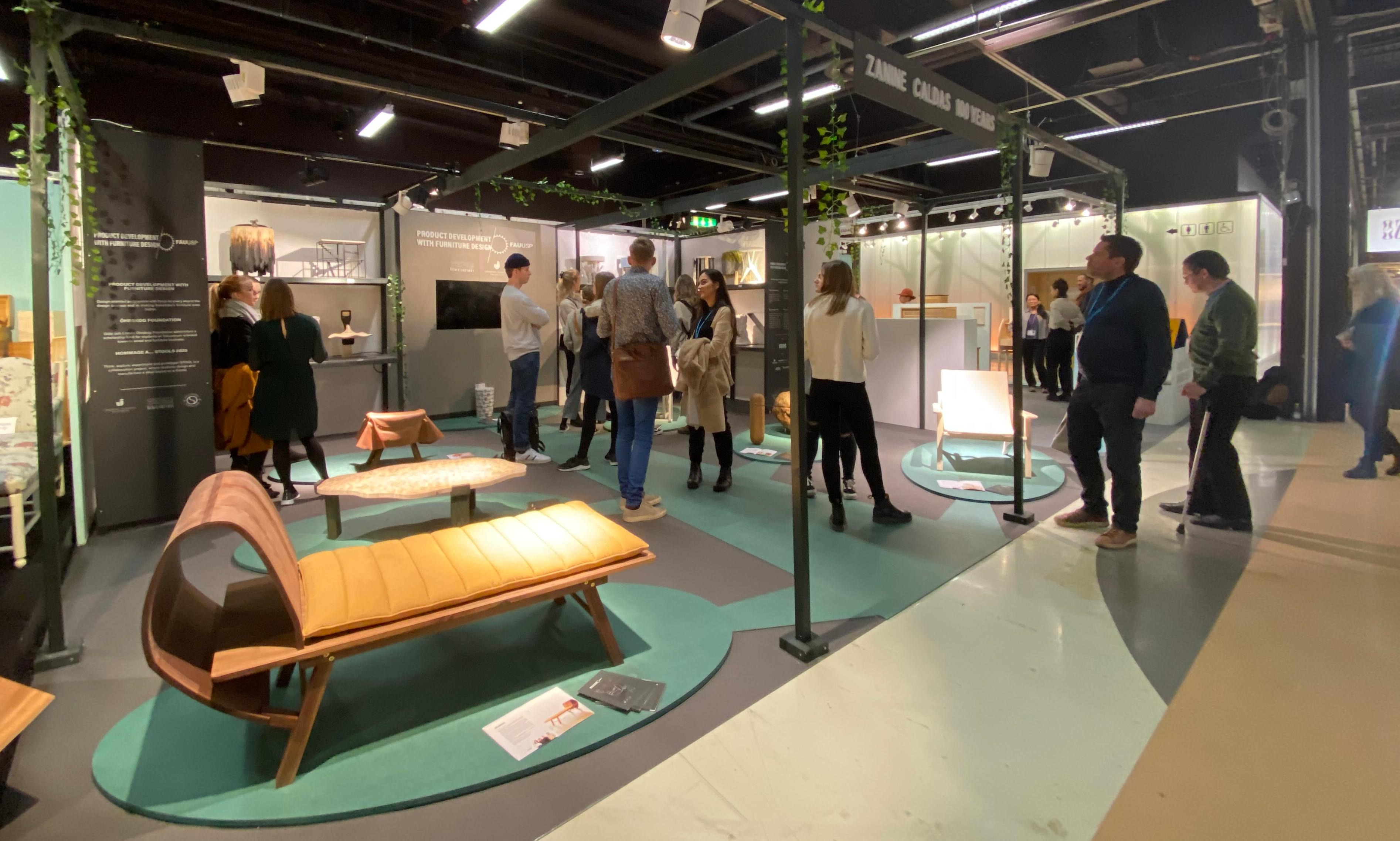 Students at the School of Engineering present their furniture in a stand at the Stockholm Furniture Fair.