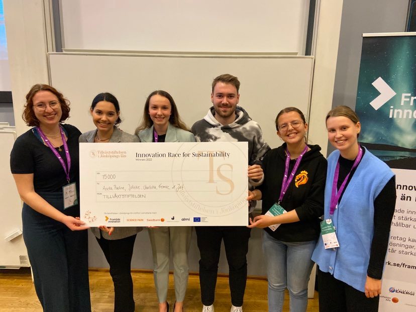 After tough deliberation by the jury, consisting of representatives from JIBS, Starbright Invest, ZiGrid and Science Park, the winners were announced. On the winning team were: Jef Vloeberghs, Aneta Benedigova, Femke Van Verre, Juliette Nicolodi, Pauline Held and Carlotta Schäfer. They presented an innovative solution to reuse MP Bolagen's cable ladders, focusing on circularity and social sustainability. The prize pool consisted of 15,000 SEK and a copy of the book "Exponential climate change" by Rebecka Carlsson.
