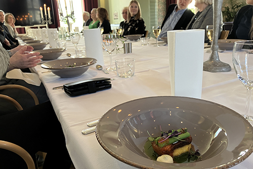 The ceremony began with lunch with this year's as well as the 2020 and 2021 recipients. Dennis Peterson, representative of the Foundation, then spoke about Aktiestinsen Lennart Israelsson. Aktiestinsen donated millions of SEK to various foundations, one of which was the School of Health and Welfare at Jönköping University (JU). The grants will be used to promote development work and research on health promotion for older people's activity and health in the field of occupational therapy. Madeleine Svärd then received a cheque from Kjell Klasson of the Foundation.
