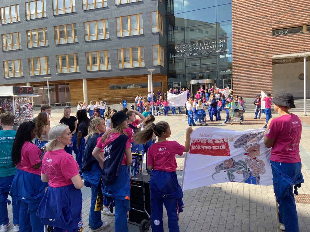 “Our task is that to make sure that the students feel good and enjoy themselves during the Kick Off," says Ida Lilja (furthest to the left), one of the "fadders" at the School of Health and Welfare.