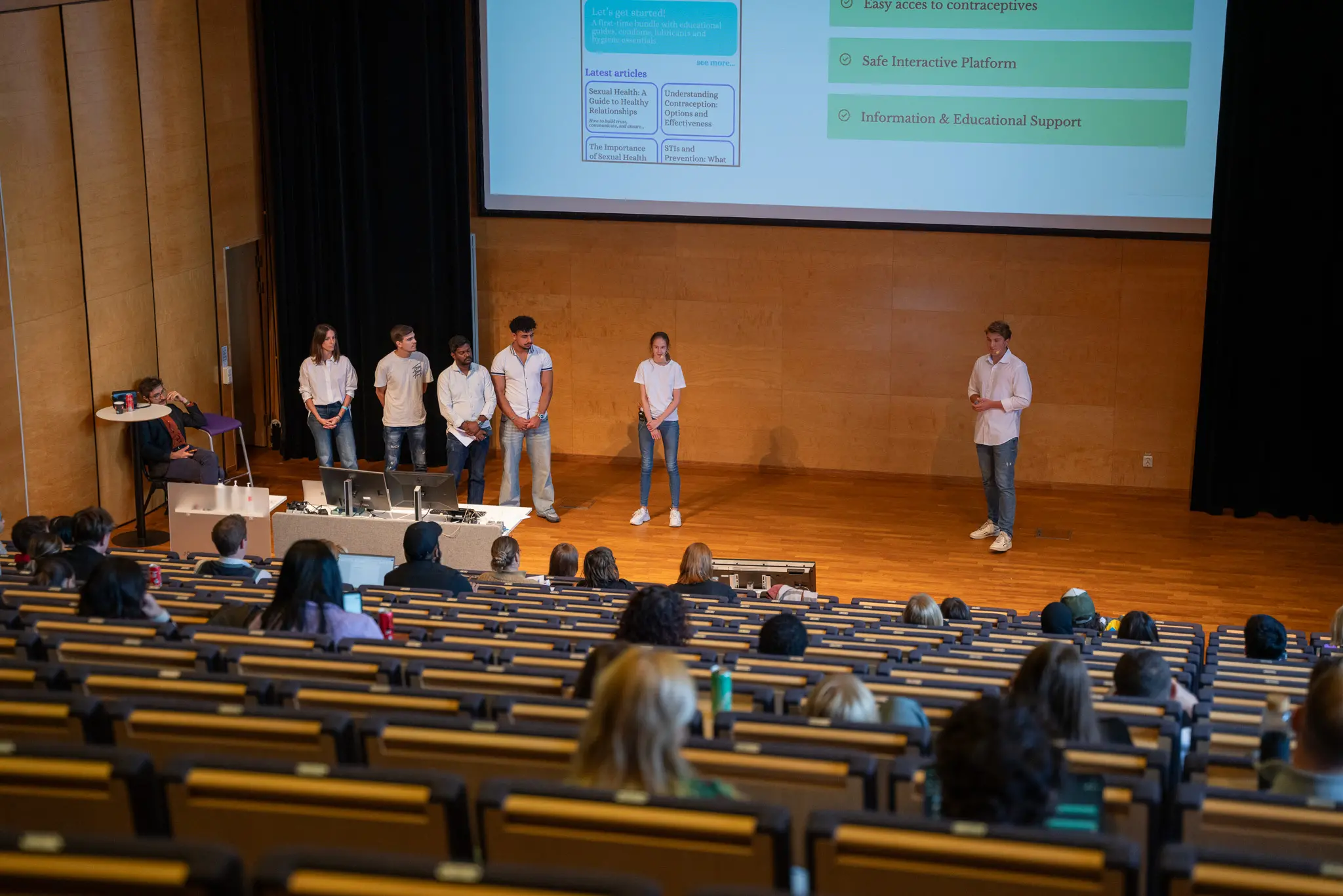In Impact Challenge, formerly known as the Sustainability Race, students work together to develop a business idea that aims to find solutions to societal challenges. This year's theme was health and well-being, with students divided into three different categories: youth mental health, the ageing population and preventive health. All teams had to present their ideas to a jury, which then selected two teams from each category to present their business idea in the final.