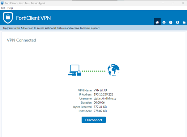 When you are connected it will look like this, click on Disconnect if you no longer want to use the VPN service.
