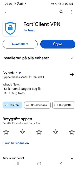 Download the FortiClient VPN app via the AppStore or via the "Play Store" if you are using a private device.
