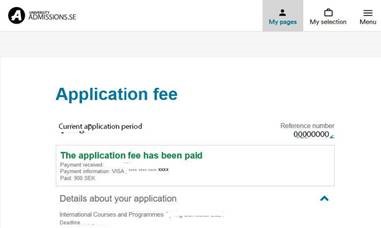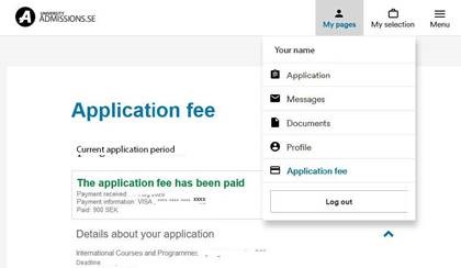 - Go to the section for Application fee under My pages