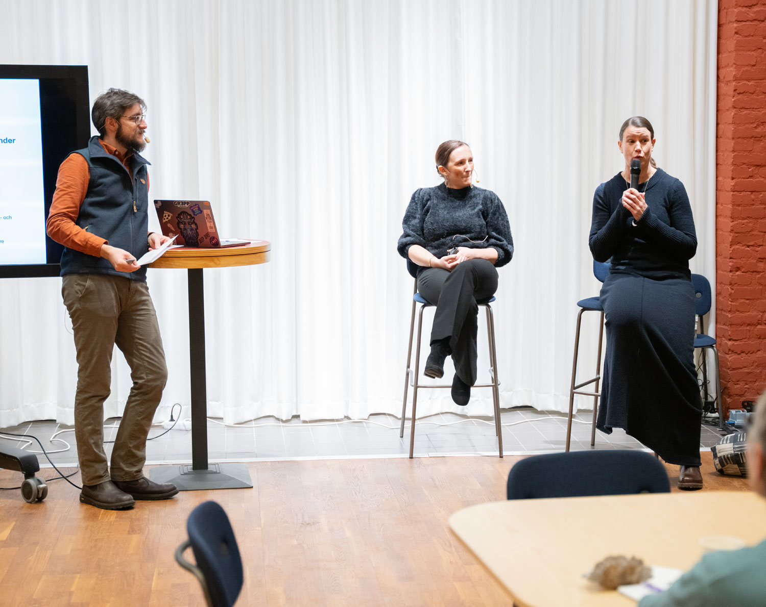 Torsdagens JU LIVE avslutades därför med ett panelsamtal mellan Thomas Cyron och Therese Silvander, miljöingenjör och förändringsledare inom energi- och transportsystem på Sweco och med lång erfarenhet av hållbarhetsfrågor samt Mariana Morasanu, hållbarhetsstrateg på Region Jönköpings län. Bland annat pratade de om att idag är det i mångt och mycket näringslivet som driver den hållbara omställningen – tidigare var det främst det offentliga – och när näringslivet är med på tåget så går det fort. Man lyfte även ett antal olika goda exempel på cirkulär ekonomi som pågår i Jönköping, som exempelvis Circular Center, Cykelköket, RE:match och satsningar på cirkulär ekonomi på Asecs köpcentrum.