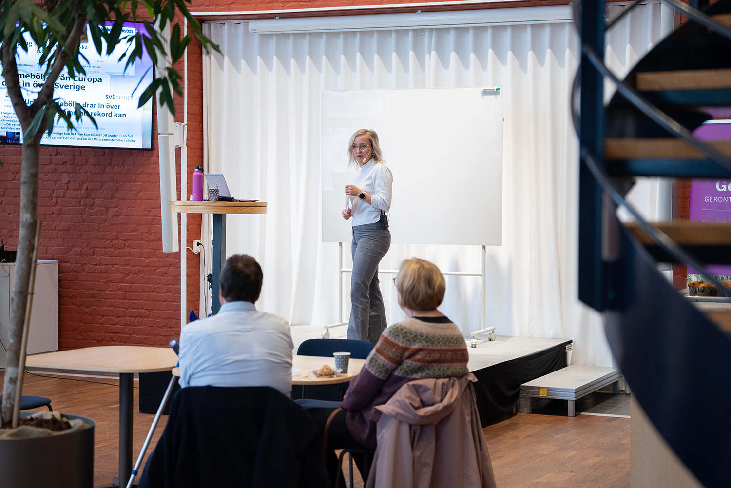 Johanna Johansson, doktorand på Hälsohögskolan, pratade om HEAT-projektet och om bra och dåliga platser i staden under värmeböljor. Bland annat visade hon detta ur seniorernas egna perspektiv, genom korta filmer de har spelat in med iPad. HEAT är ett samarbete mellan fyra svenska lärosäten och handlar om stadsplanering för en åldrande befolkning i ett varmare klimat.