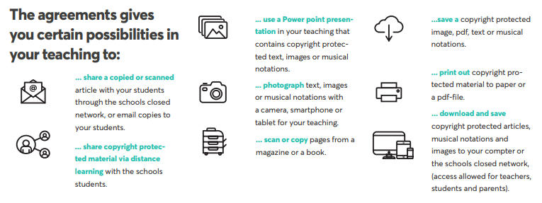 All literary and artistic works are protected by copyright law. As a teacher, you therefore need to be aware of how you may use texts and other material from books and articles, such as pictures, tables, figures and even musical notes in your teaching.