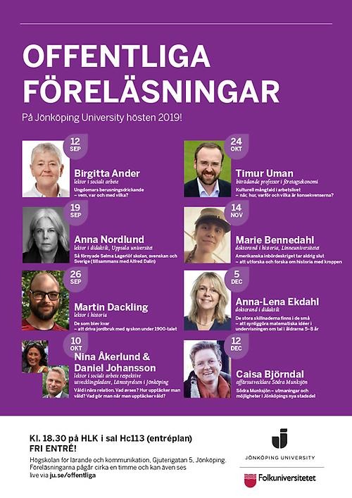 Torsdag den 12 september startar höstens offentliga föreläsningar på Jönköping University. Först ut är Birgitta Ander som föreläser om ungdomars berusningsdrickande.