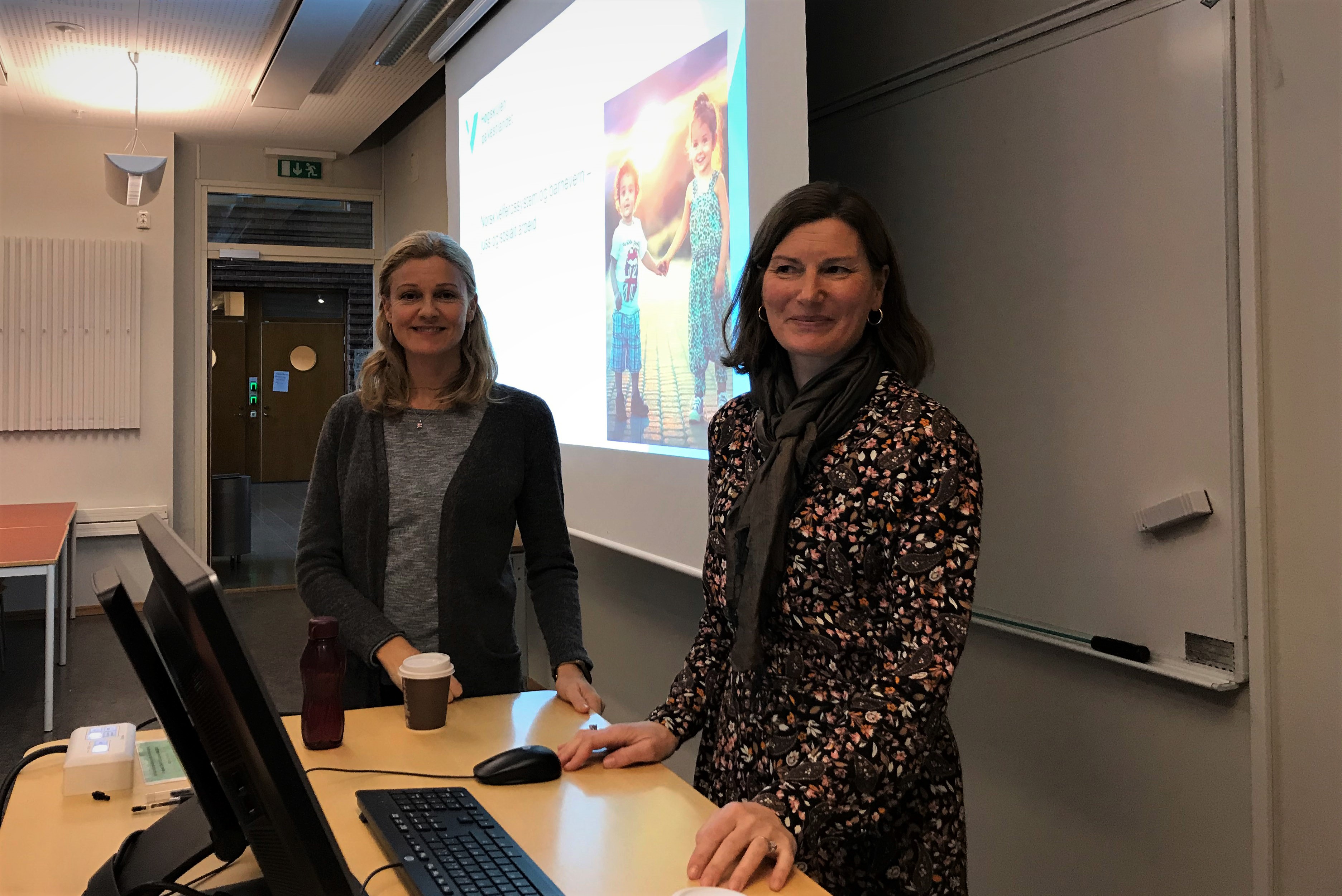 Vibeke Samsonsen och Karen Reimers är här för ett Erasmusutbyte med Hälsohögskolan och har under sitt besök också föreläst för olika klasser på socionomprogrammet.
