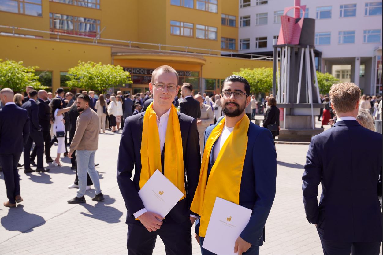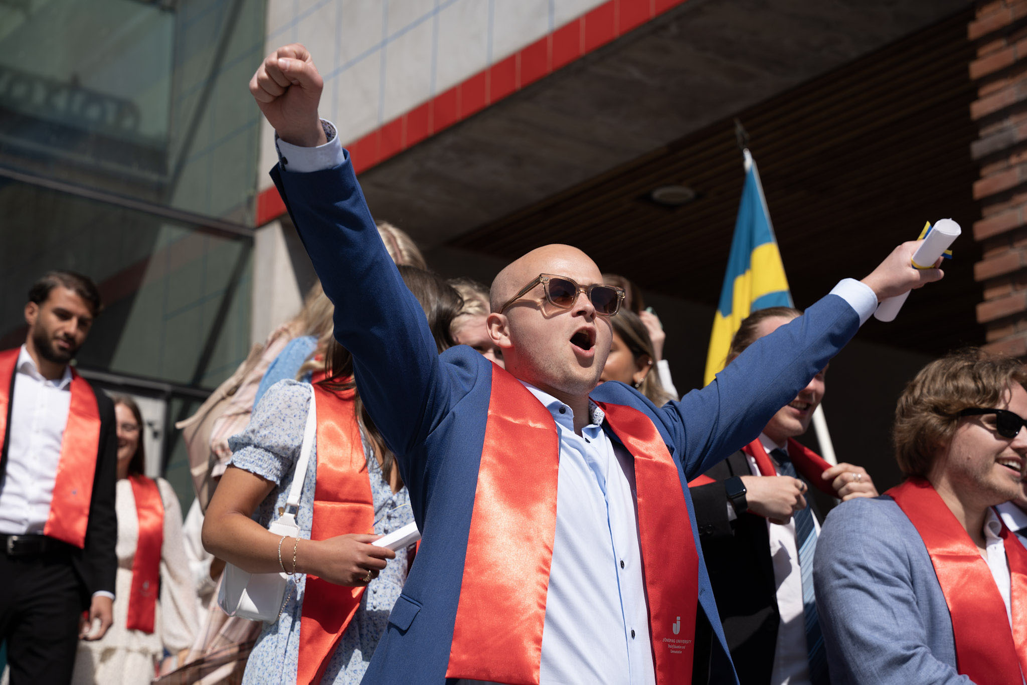 Först ut var Tekniska Högskolan (JTH), som hade sin avslutningshögtid den 2 juni i Hälsoparken vid JU. Sebastian Istiphan, som har läst Nätverk, infrastruktur och cybersäkerhet, tyckte att det kändes overkligt att ta examen.