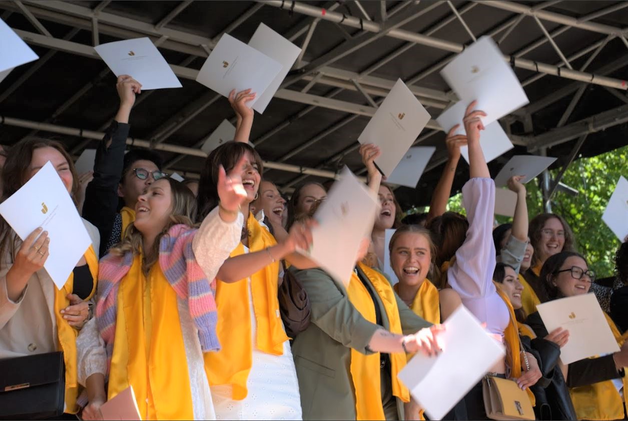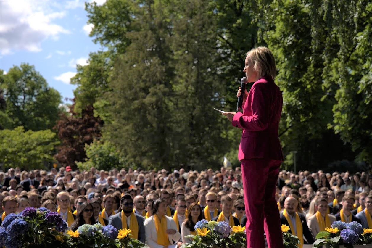 För andra året i rad höll HLK sin ceremoni på trappan utanför HLK med publik som fyllde stora delar av campus.