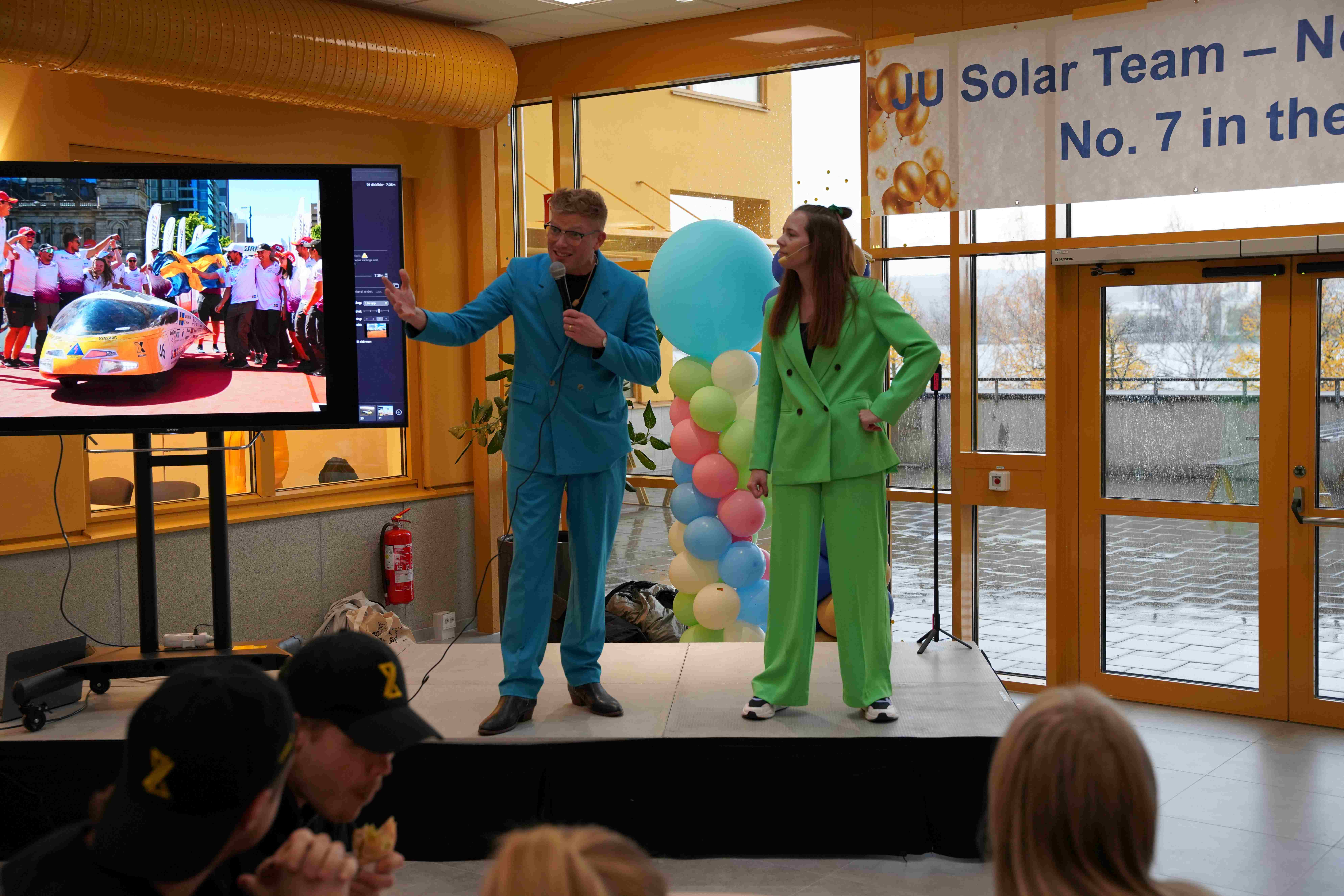 JU Solar Team blev bästa svenska solbil och slutade sjua totalt i tävlingen där man korsar den australiska kontinenten. Laget emot med varma applåder, hurrarop och gratulationer från de drygt 100 åhörarna i galleriet på JTH. Flera deltagare blev intervjuade och berättade om tävlingen och de många utmaningarna de ställdes inför. Konferencierer var Jonas Gallneby och Alexandra Pettersson från FSK Group.