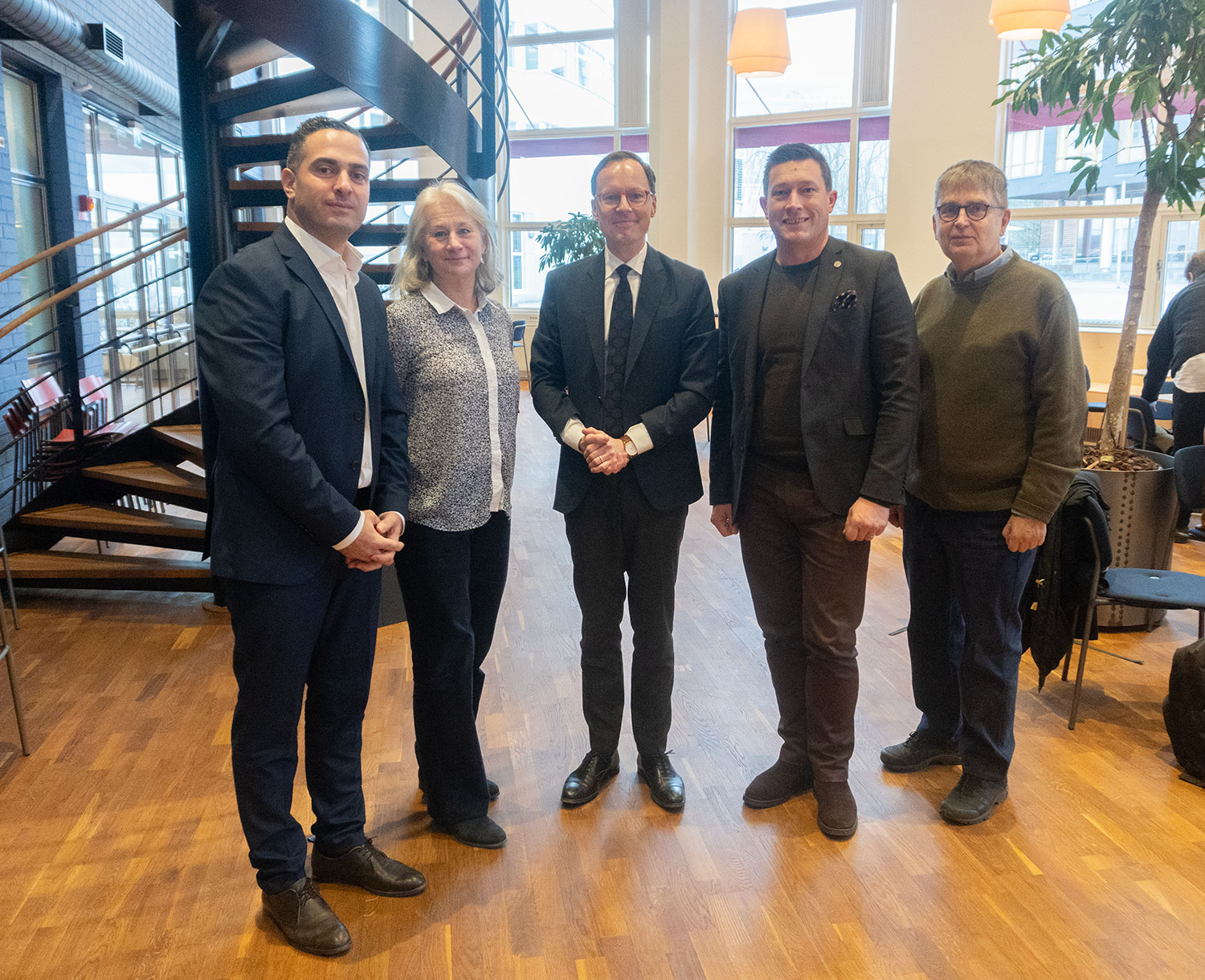 Onsdagen den 15 november välkomnade JU Mats Persson, utbildningsminister, Maria Noleryd, politiskt sakkunnig, Lars Olof Mikaelsson, tjänsteman på Utbildningsdepartementet, och Jimmy Ekström, regionråd på Region Jönköpings län. Syftet med besöket var att visa upp JU:s verksamhet och samtala om utbildning och forskning. Under besöket fick de träffa JU:s ledning, och fick höra hur JU gör skillnad regionalt, nationellt och internationellt.