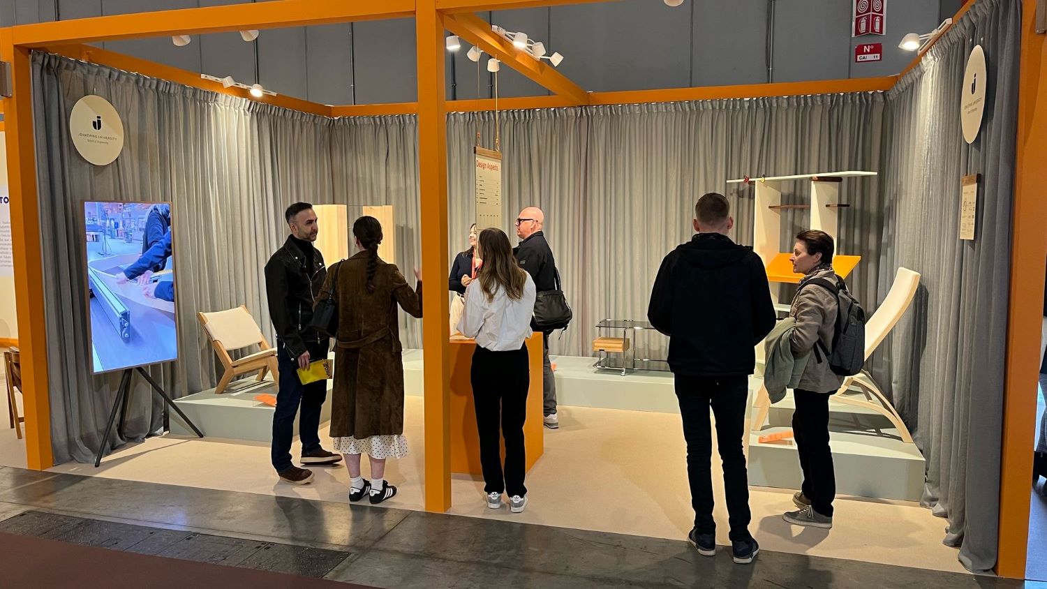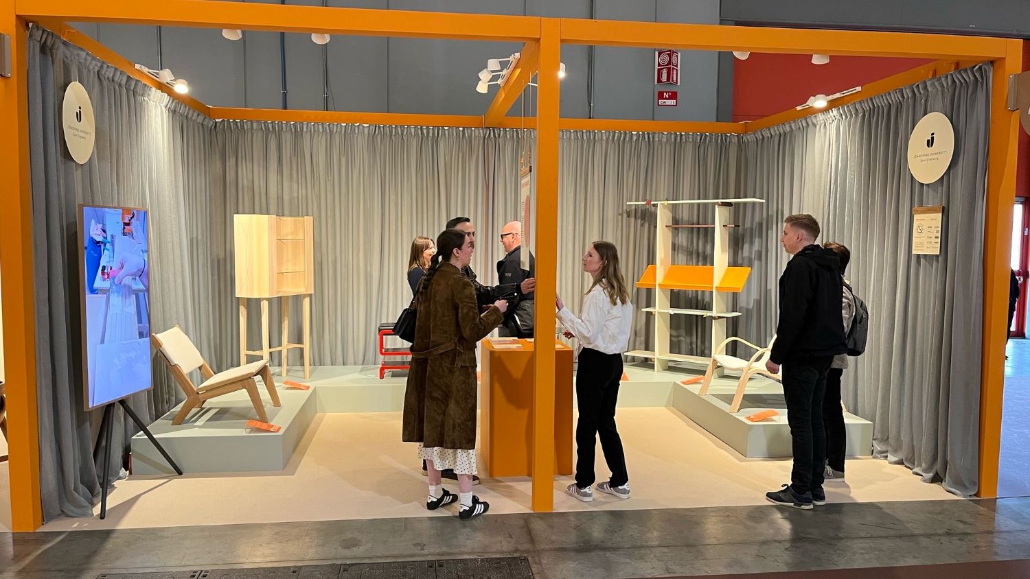 Det här är första gången som studenter från Produktutveckling med möbeldesign på JTH ställer ut på Salone Internazionale del Mobile i Milano. De visar upp fåtöljer, hyllor, en bänk och ett bord i sin egenbyggda monter.