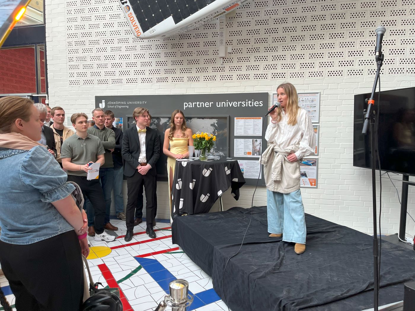 Under avtäckningen presenterades studenterna i JU Solar Team och det var en teknisk genomgång av bilen. Matilda och de övriga i teamet riktar ett särskilt tack till sina sponsorer, som de senare på kvällen åt middag med på JTH.