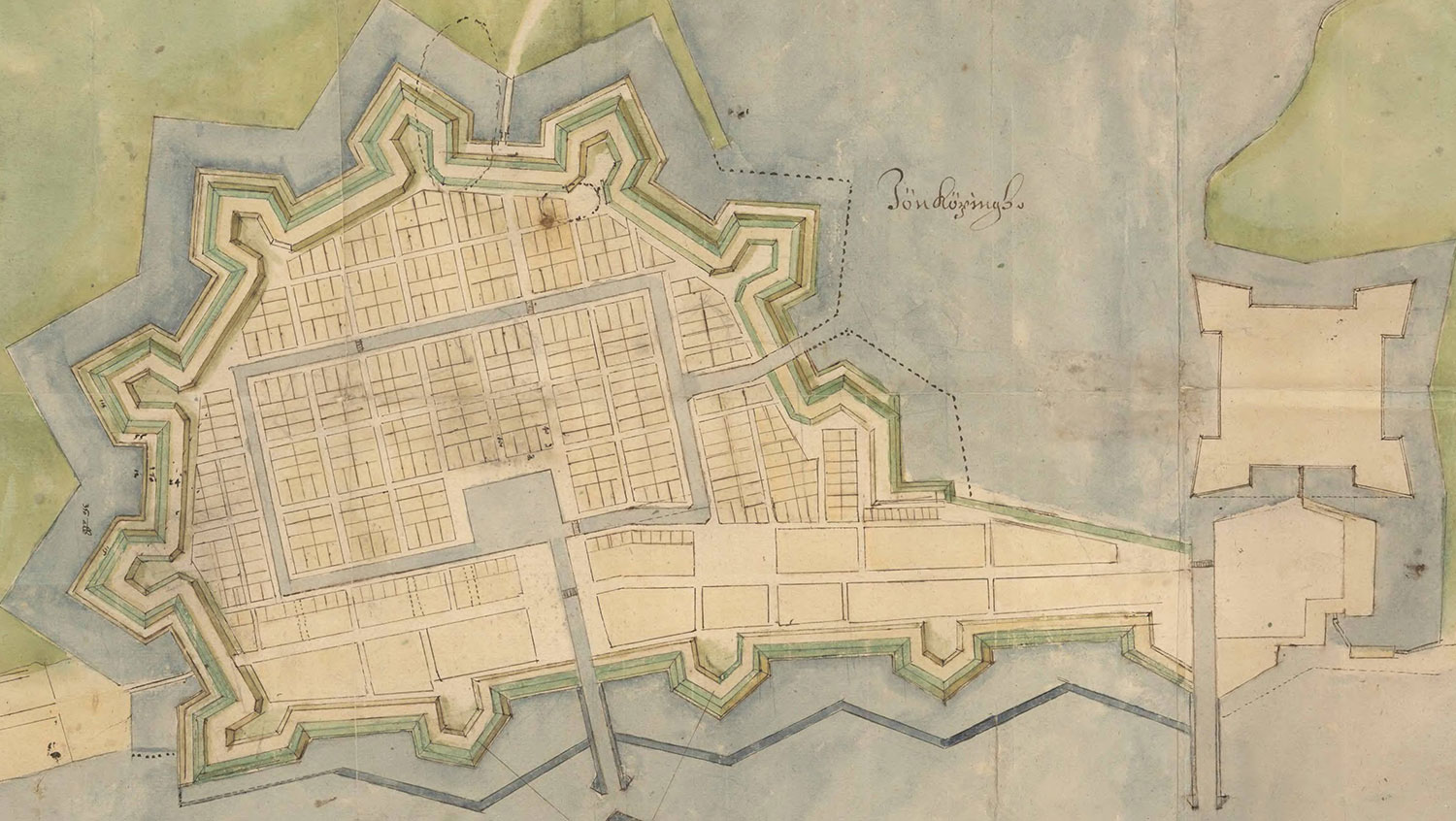 Tilltänkt stadsplan för Jönköping från 1620-talet.