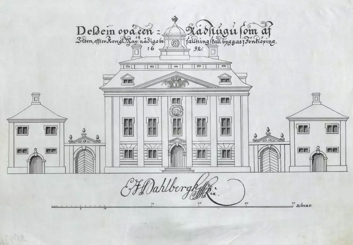 Erik Dahlberghs ritning av rådhuset från 1692