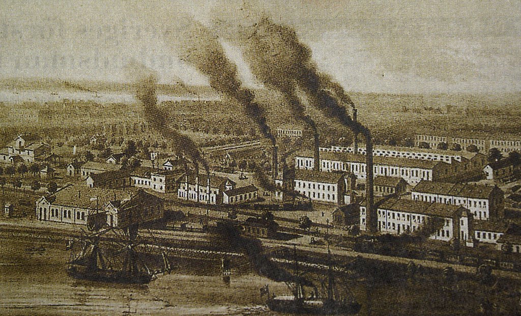 Befolkningstillväxten steg långsamt i Jönköping och år 1800 fanns en befolkning på 2 684 personer. Fram till 1850 växte staden kraftigt och hade då drygt 6000 invånare. Anledningen var den ökande företagsamheten där betydelsefulla fabriksanläggningar kom till. På så sätt kunde fler anställas och bosätta sig i staden. År 1844 startades en fabrik som tillverkade mässingsknappar, plåtar och beslag. Det var 28 anställda, men redan året därefter hade det ökat till 52 anställda, men det ska då tilläggas att hälften var minderåriga. Fabriken låg på den öppna platsen mellan Stora hotellet och kanalen.