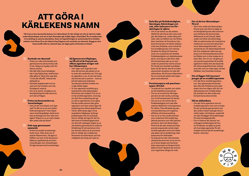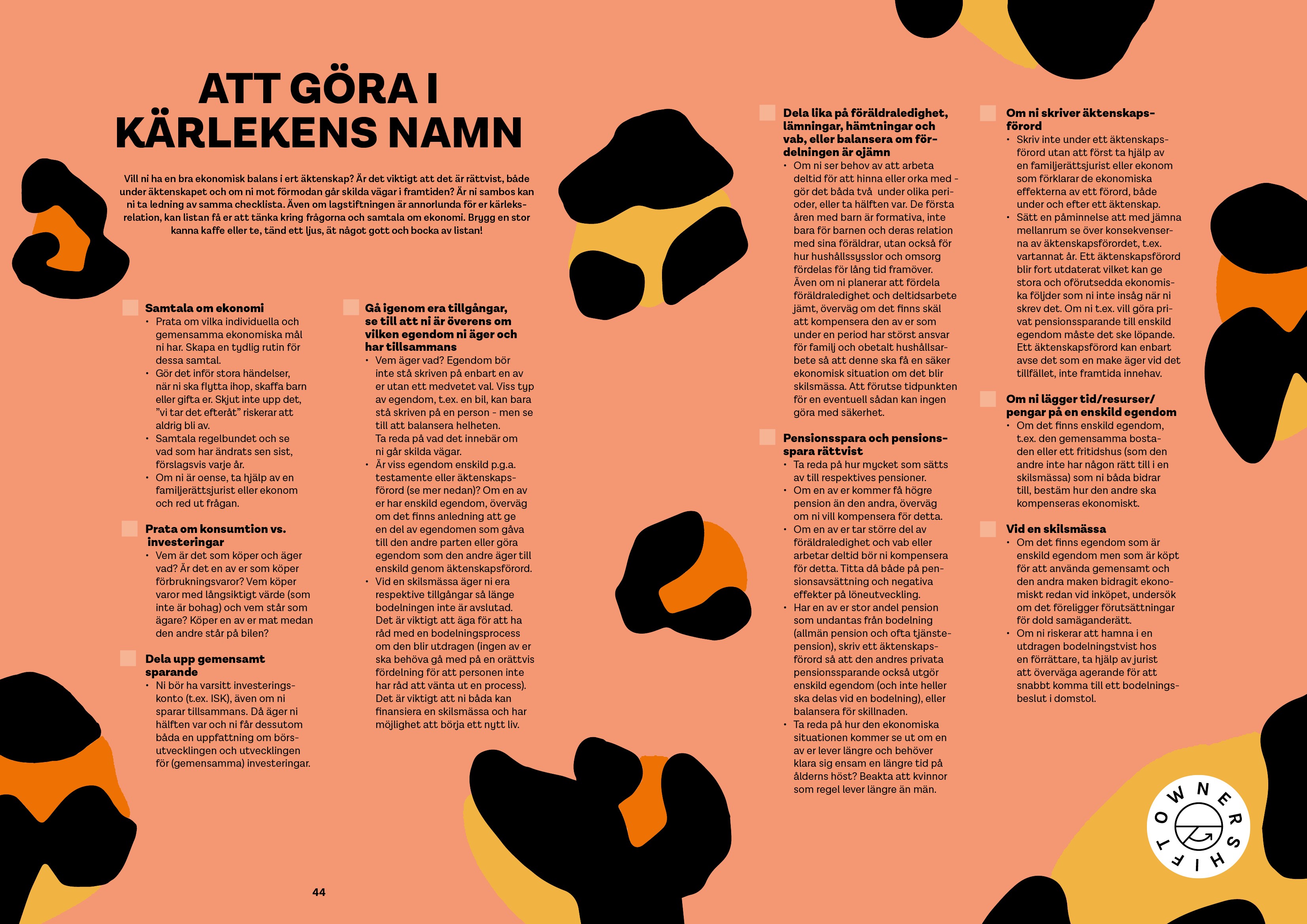 Så gör nu er relation en tjänst genom att sätta er ner och samtala kring er ekonomi och ert ägande. Ownershift hoppas denna lista kan vara ett stöd (klicka på bilden för att se den större):