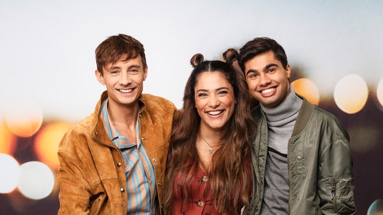 Farah Abadi (mitten), tidigare MKV-student på HLK, är en av programledarna som leder Musikhjälpen 2018. Tillsammans med Daniel Adams-Ray och William Spetz sänder hon live direkt från buren i Lund hela veckan.