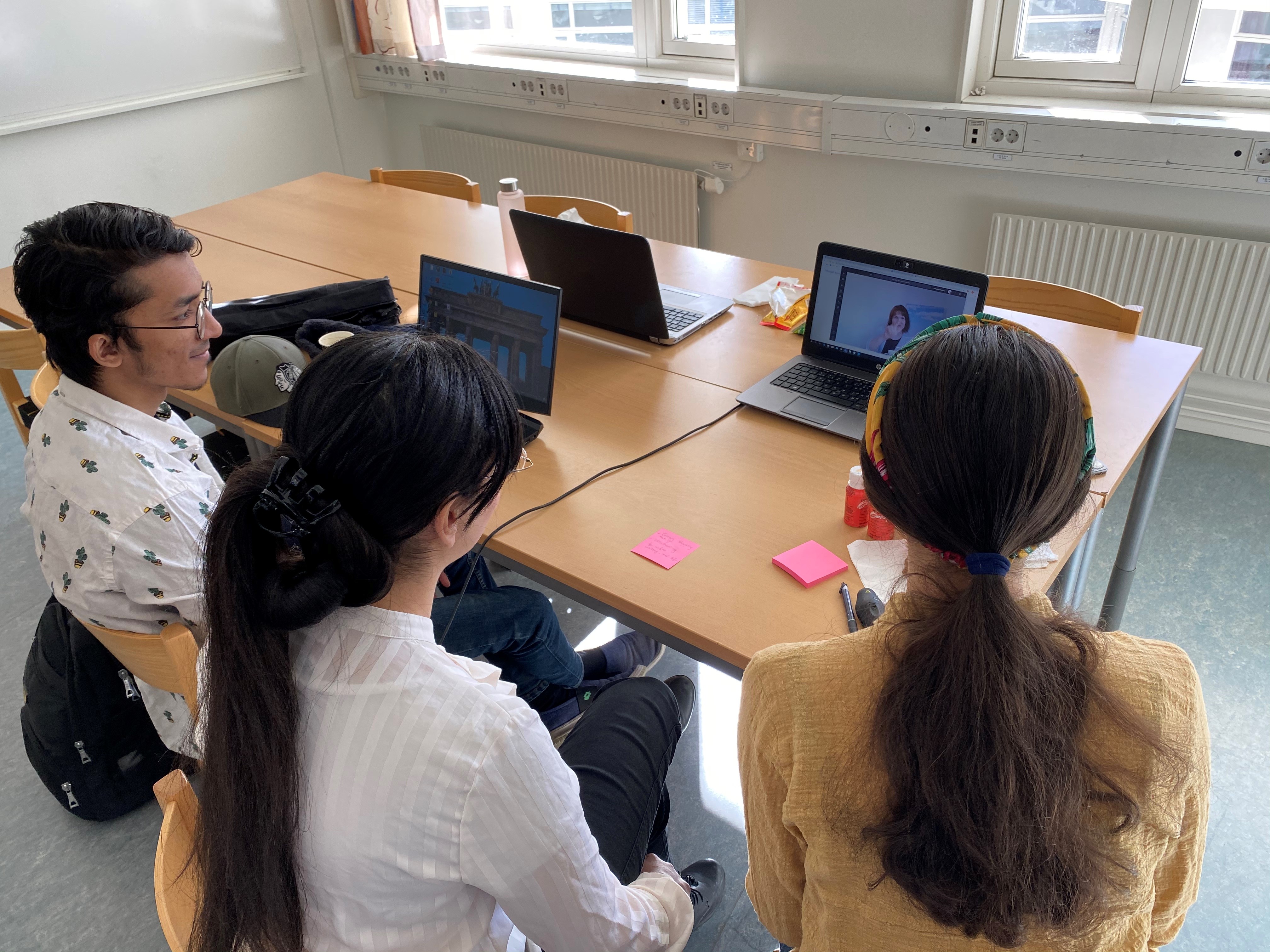 Ett team från årets JIBS Entrepreneurship Challenge tar blir på bilden coachade av en JIBS-mentor via en digital mötesplattform.