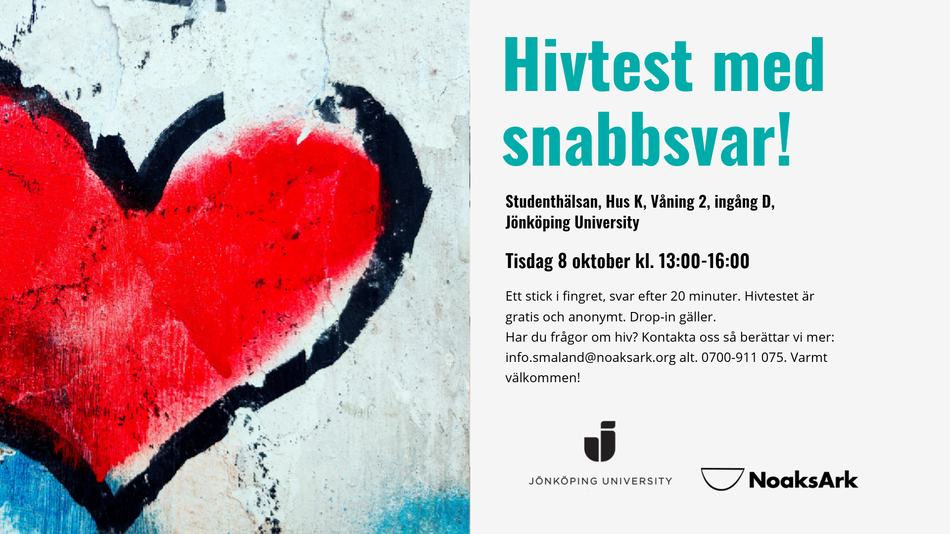 Den 8 oktober kommer Noaks Ark att erbjuda JU:s studenter att ta snabbsvarstest för HIV.
