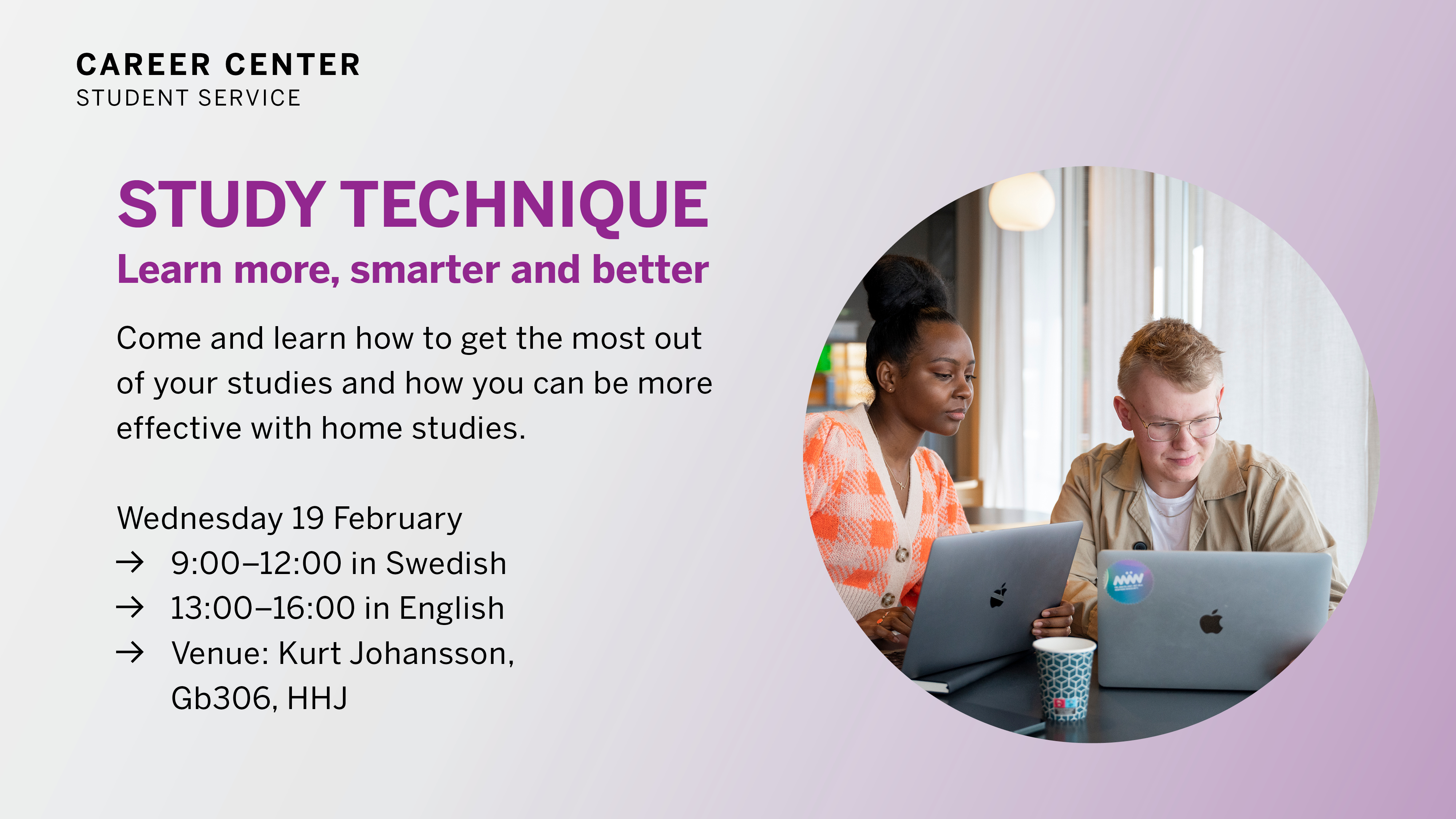 Den 19 februari anordnar Career Center en föreläsning om studieteknik! Lär dig mer, smartare och bättre!