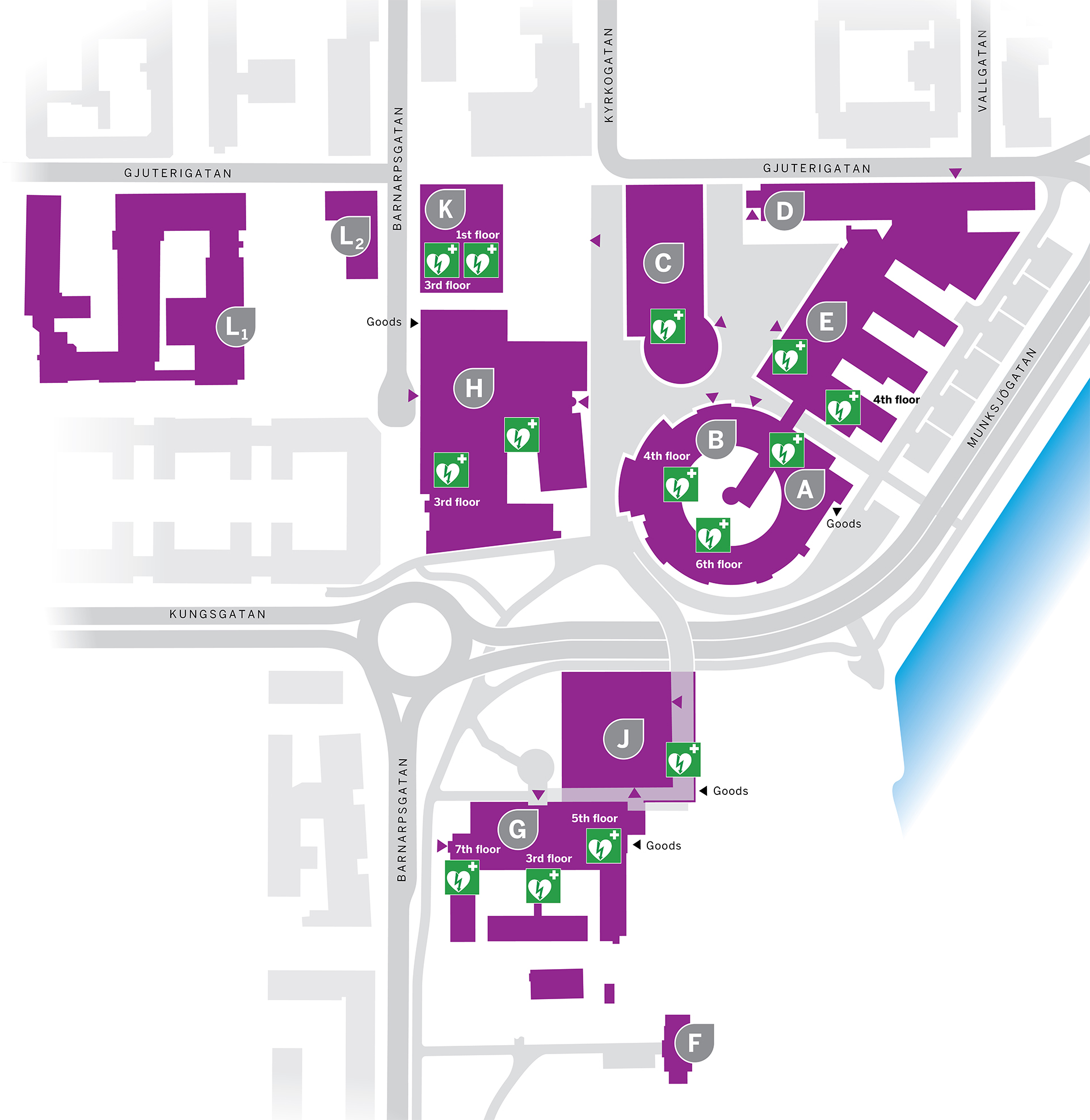 The University has a number of defibrillators (instructions are in Swedish). These can be found at the School of Health and Welfare, School of Education and Communication, School of Engineering, Jönköping International Business School, the University Library, Campus Arena, Nordic Wellness and the Caretaker’s Office.