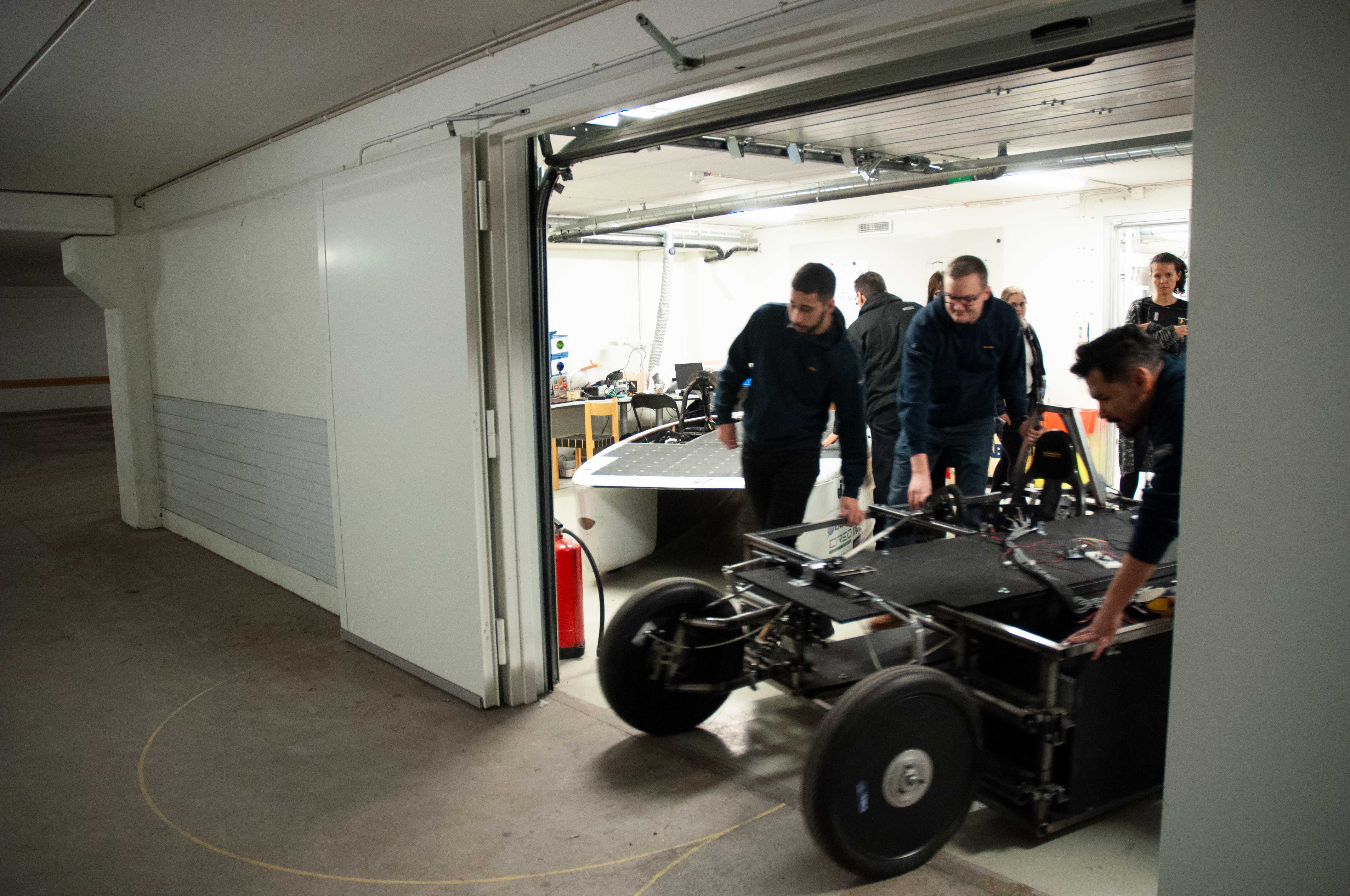 JU solar teamet poserande med solbilen