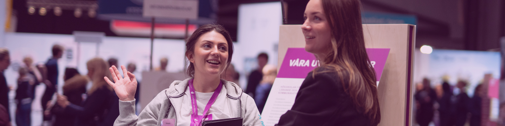 Du kan träffa studenter från Jönköping University på flera håll i landet under året. Du kan träffa dem på högskolan, på mässor, olika gymnasier och digitalt såklart. De har svar på dina funderingar om att plugga vidare. Kontakta oss gärna i chatt och kontaktformulär nedan, eller om du vill att vi ska komma och besöka dig på just din skola. Vi ser fram emot träffas för att prata framtid och studier med dig.